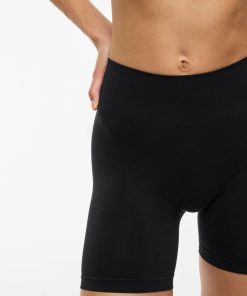 – Mini shape shorts – Stretchable fabric – Ribbed waist – Inseam: 12 cm in size 38- Front rise: 18.5 cm in size 38- Our model is 178 cm tall and wears size 38
