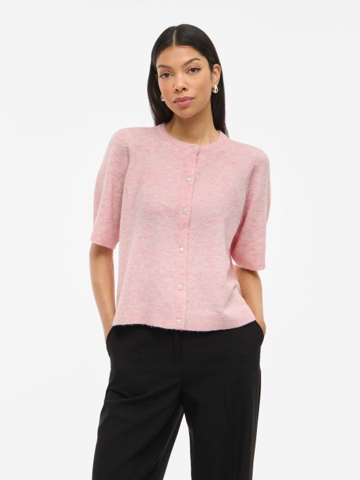 • Short sleeved knitted cardigan• Round neck• Front button fastening • Ribbed trims• Soft, stretchy knit• Regular fit• Length: 56 cm in size M• Sleeve length: 30 cm in size M
