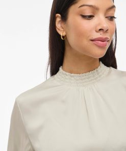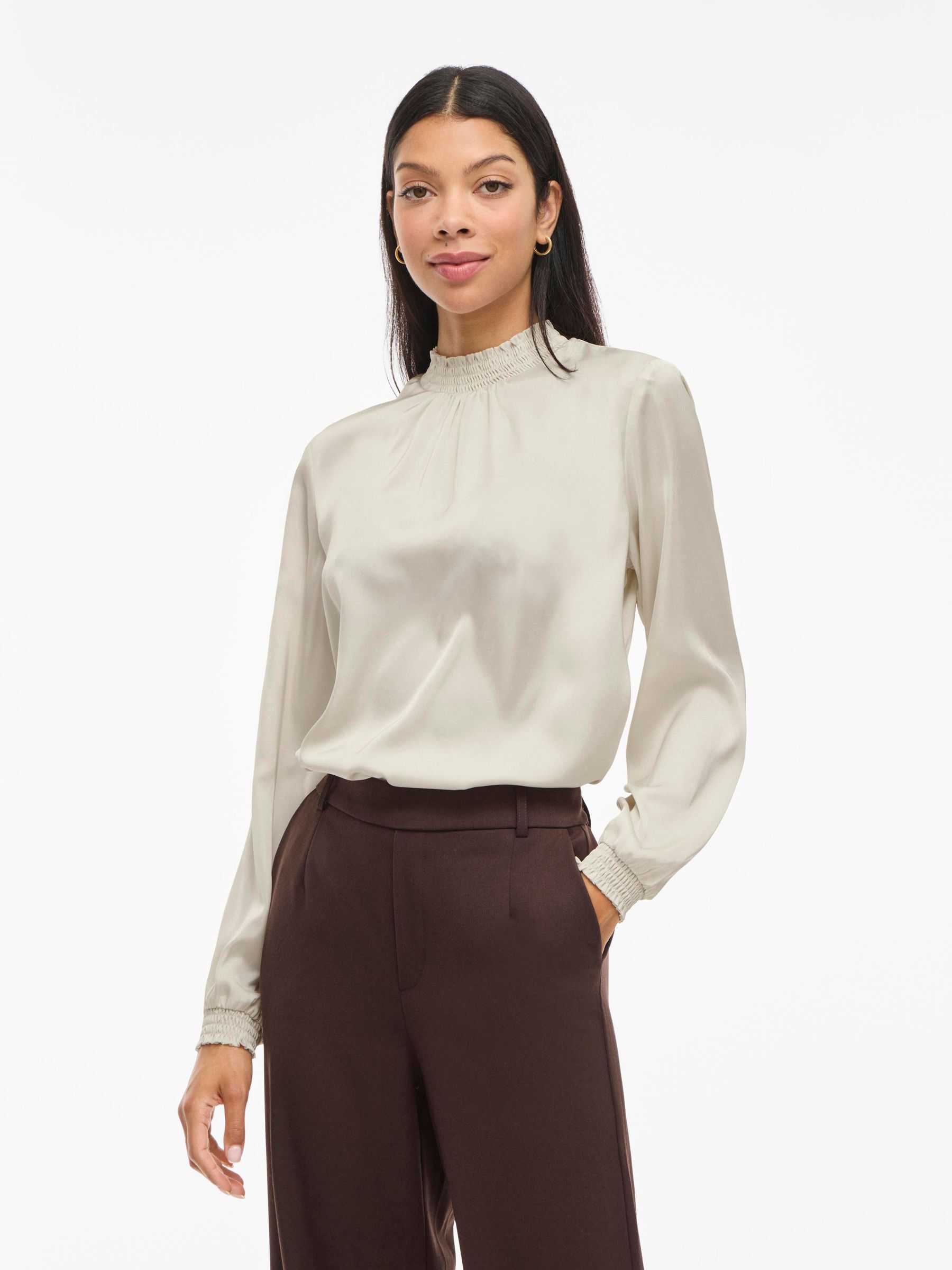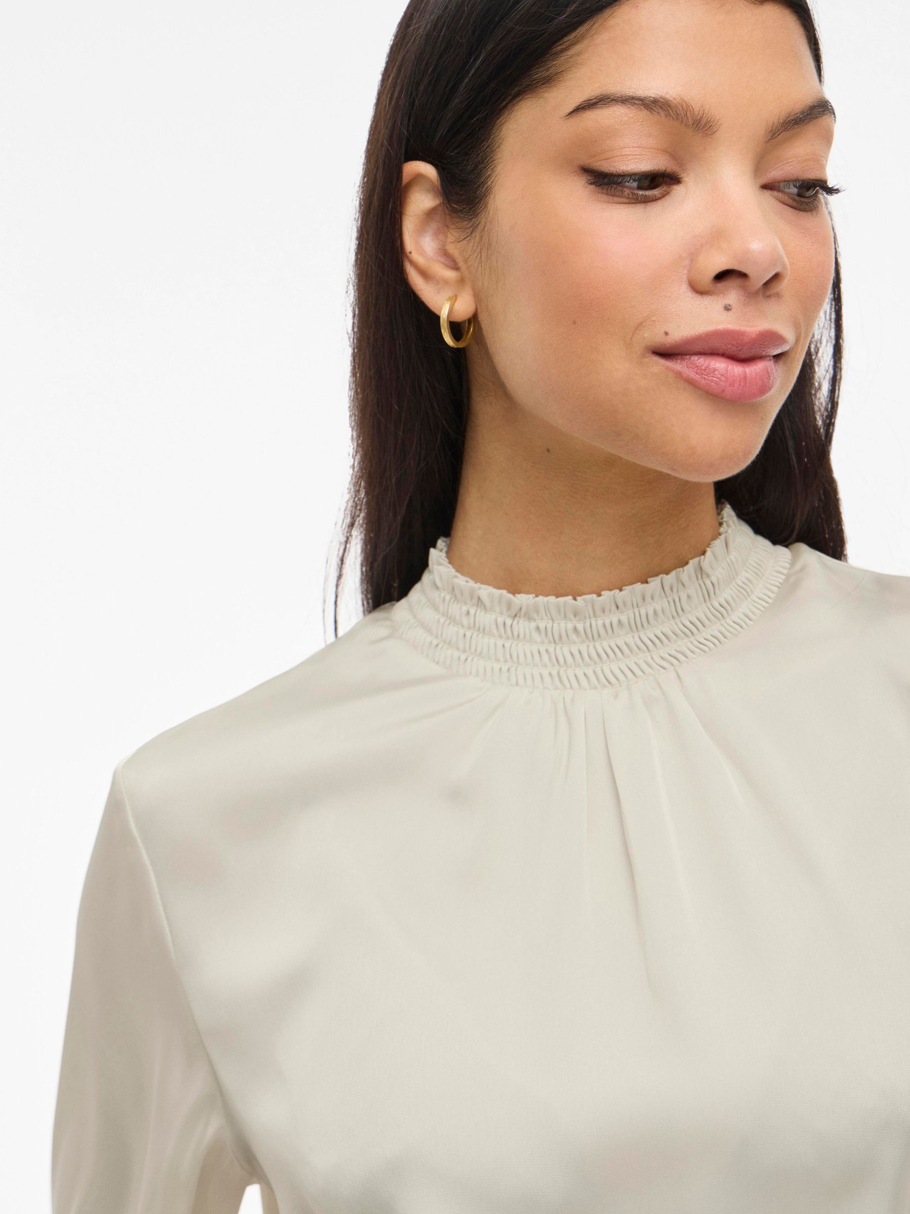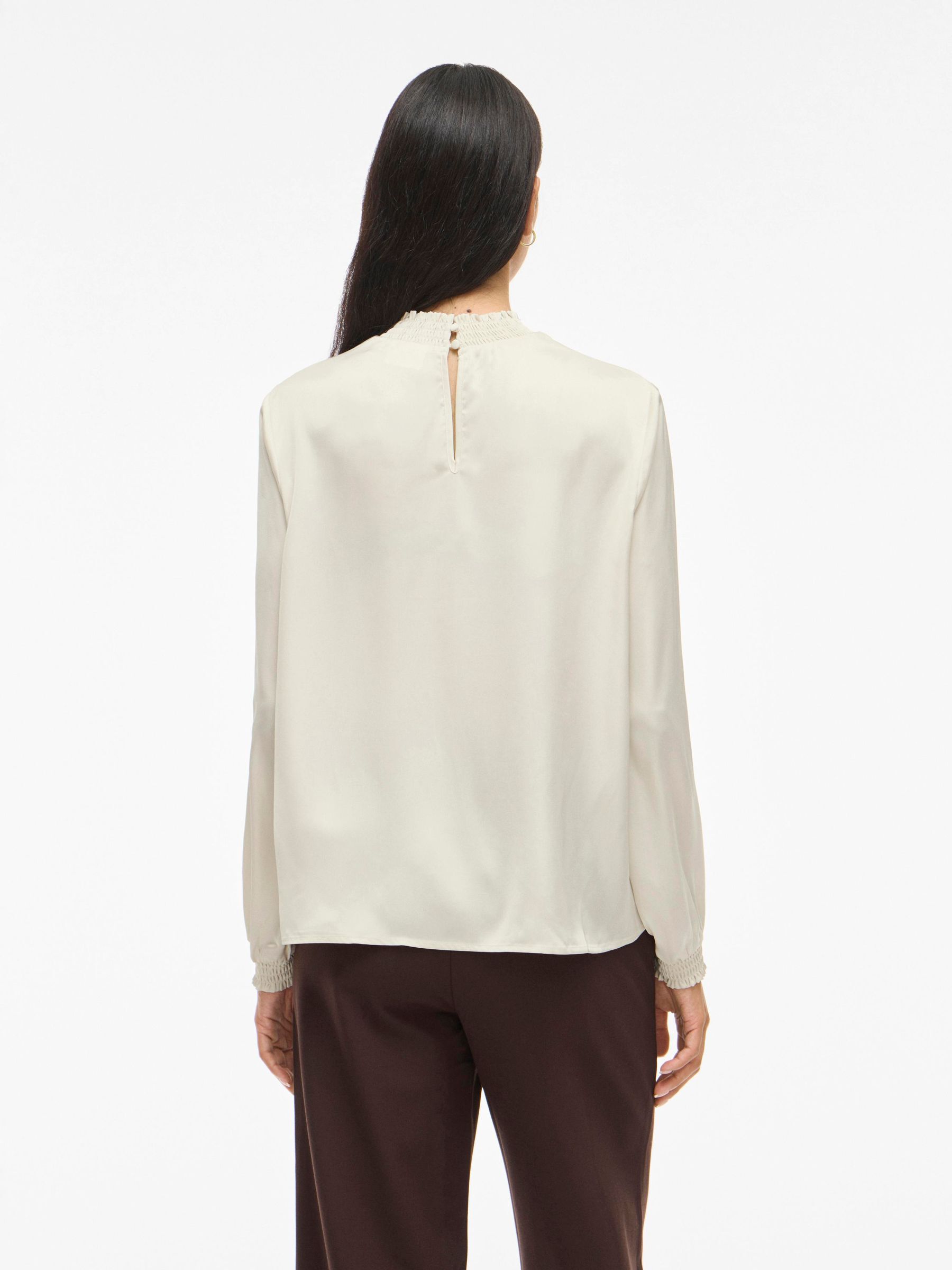 • Long sleeved top with high smock neck• Smock cuffs• Shiny and light fabric• Regular fit• Length: 64 cm in size 38• Sleeve length: 64 cm in size 38