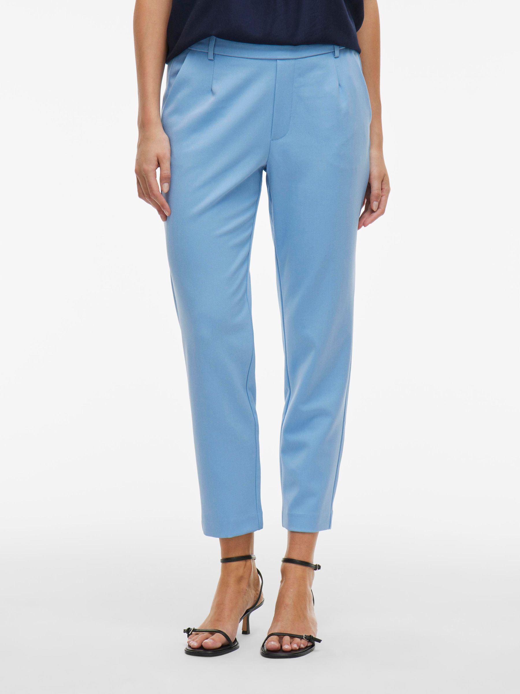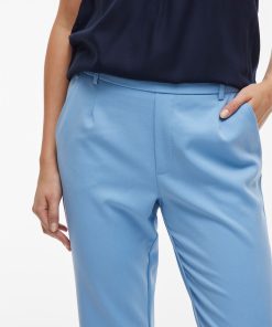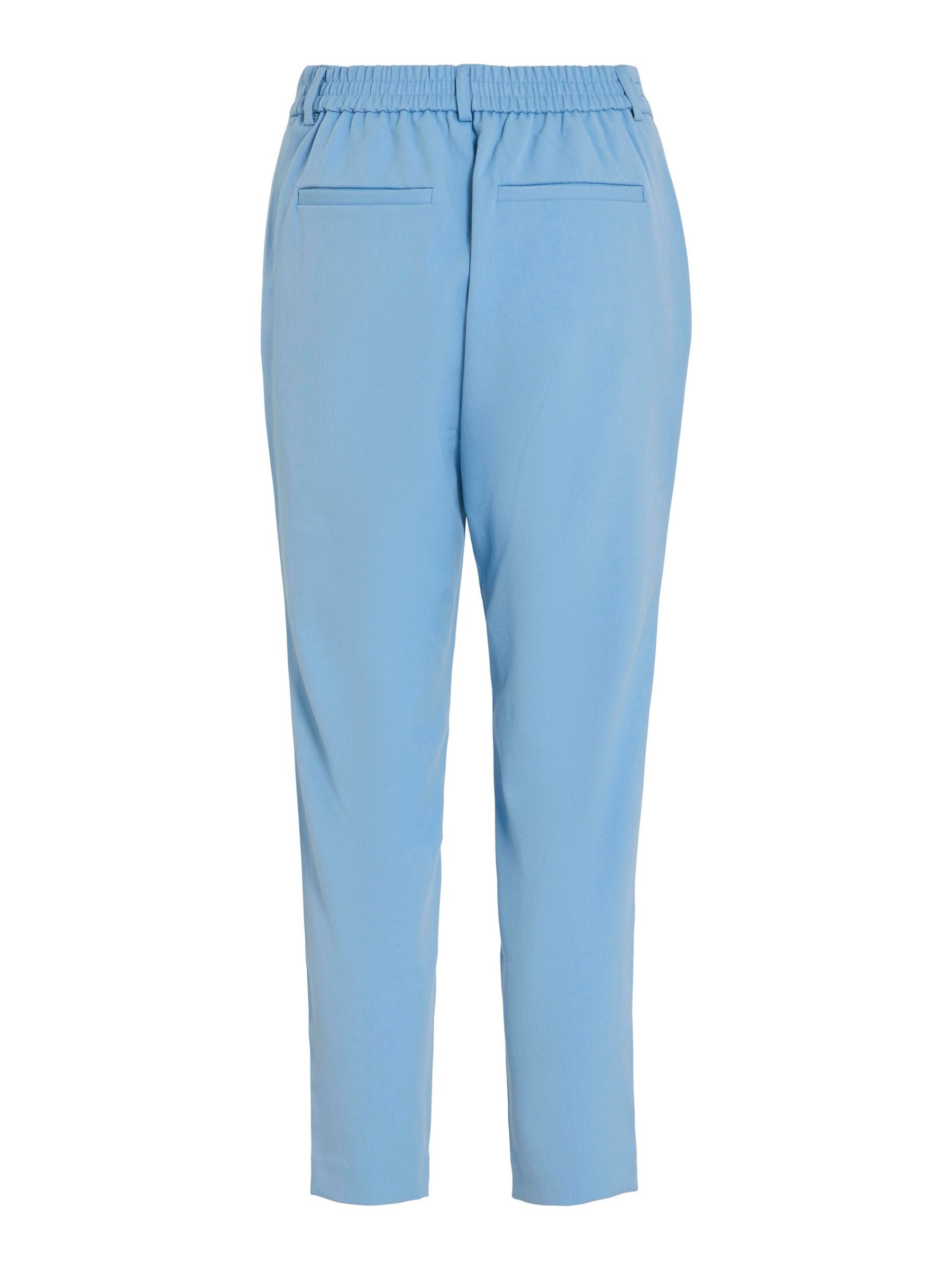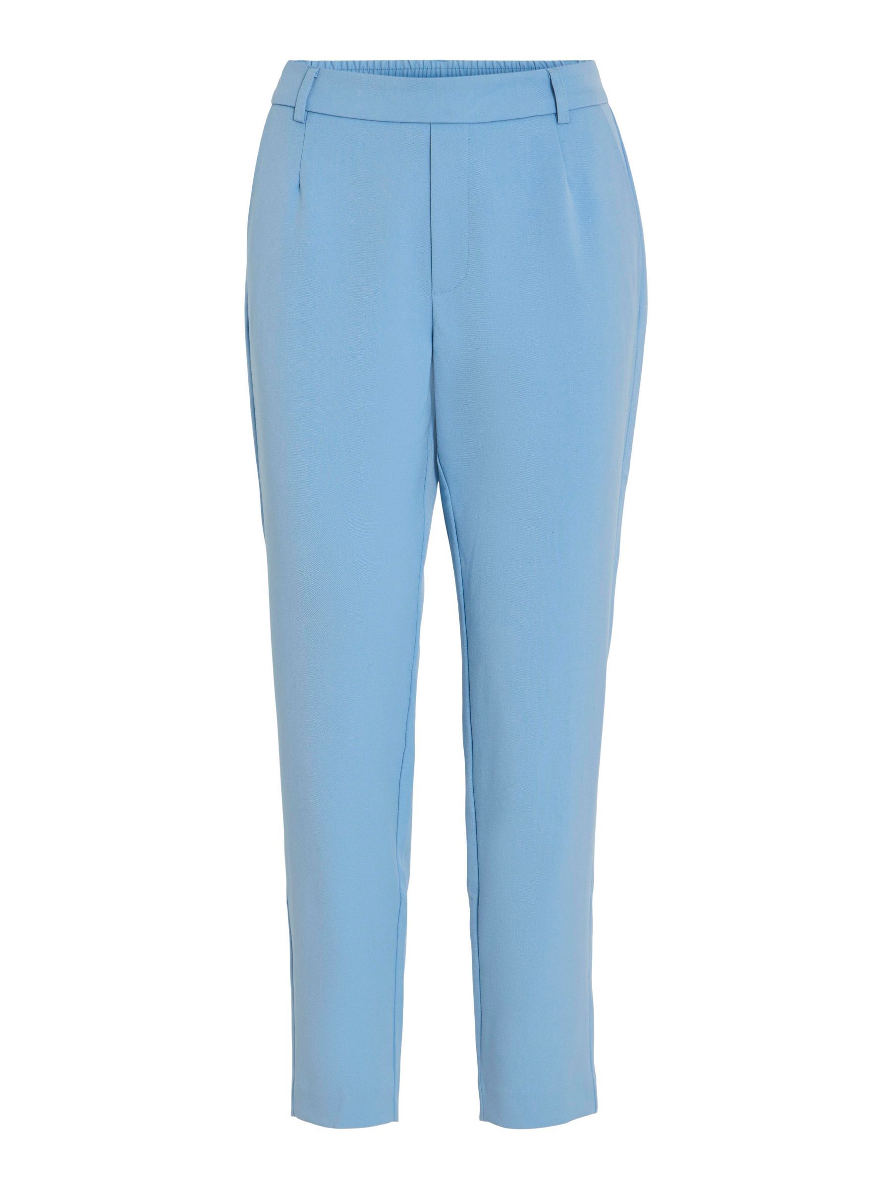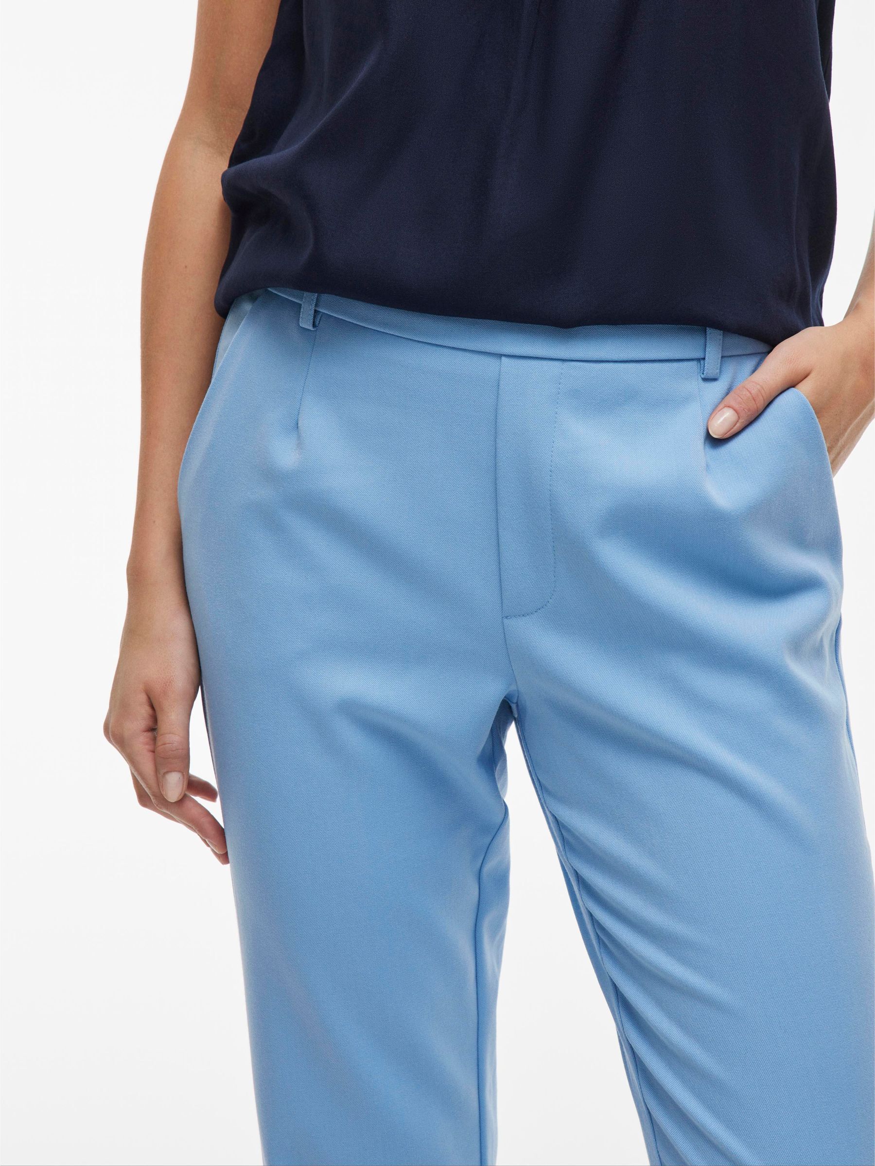 – High waist pants- Stretch-back waist- Faux zip fastening- Side pockets- Decorative back pockets- Belt loops – Straight, slim fit- Inseam: 69 cm in size 38- Frontrise: 28 cm in size 38