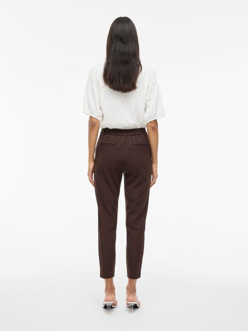 – High waist pants- Stretch-back waist- Faux zip fastening- Side pockets- Decorative back pockets- Belt loops – Straight, slim fit- Inseam: 69 cm in size 38- Frontrise: 28 cm in size 38