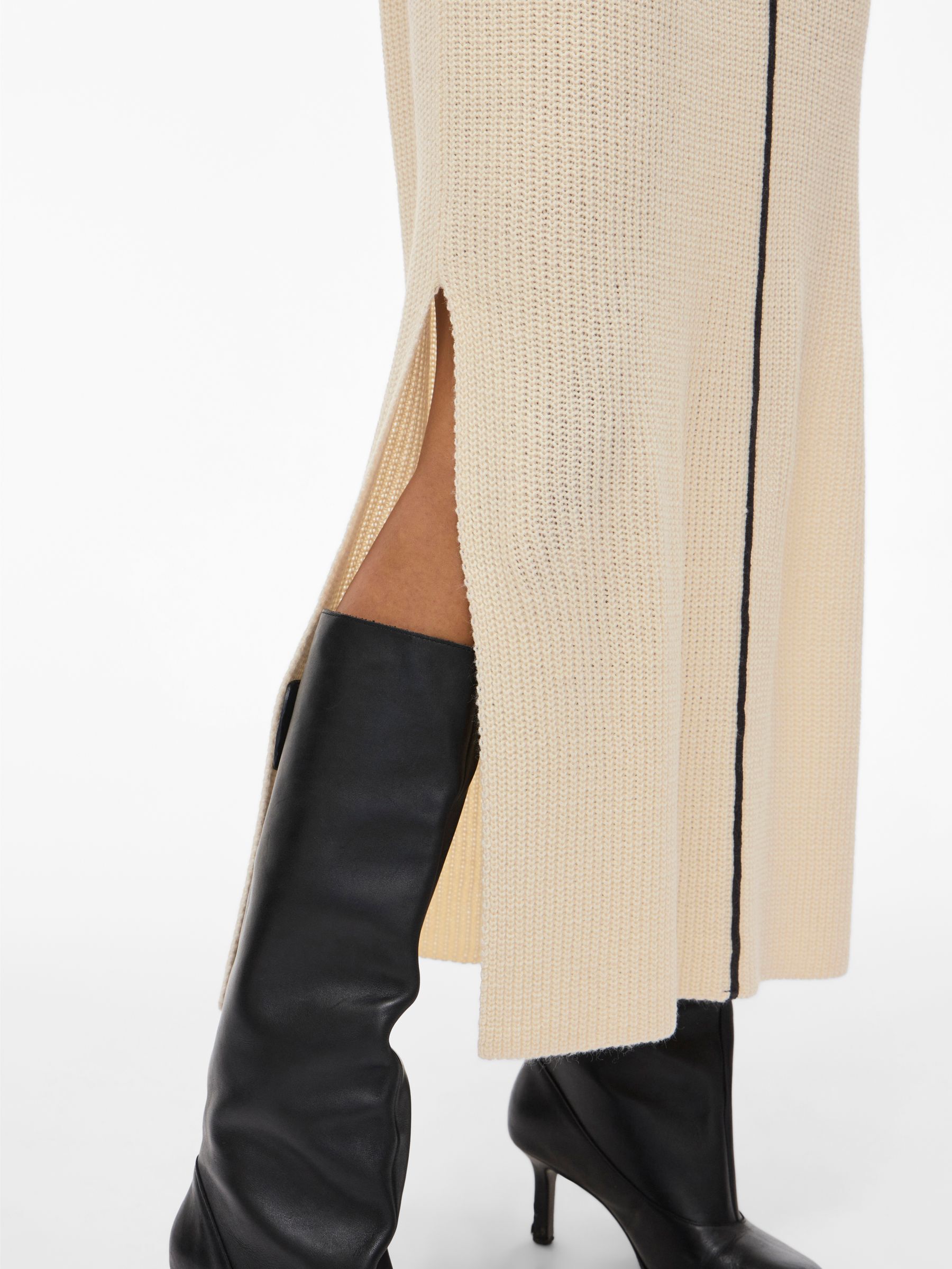 • Knitted maxi dress• Long sleeves• High neck• Dropped shoulders• Turn-up on sleeves• Side slits• Regular fit• Length: 121 cm in size M• Sleeve length: 62 cm in size M