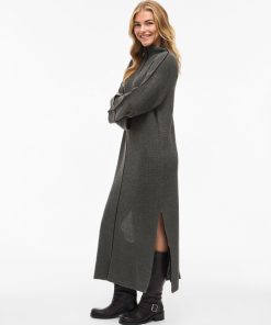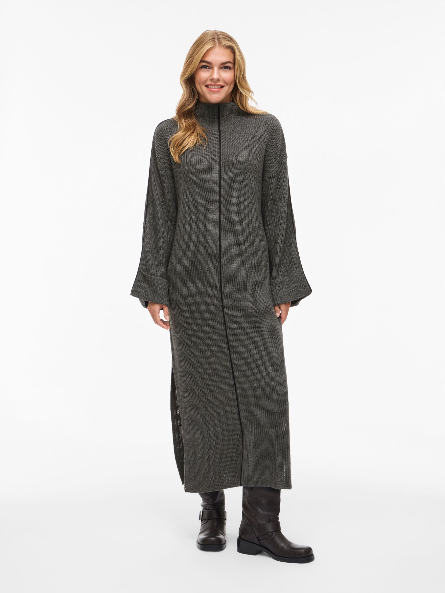 • Knitted maxi dress• Long sleeves• High neck• Dropped shoulders• Turn-up on sleeves• Side slits• Regular fit• Length: 121 cm in size M• Sleeve length: 62 cm in size M