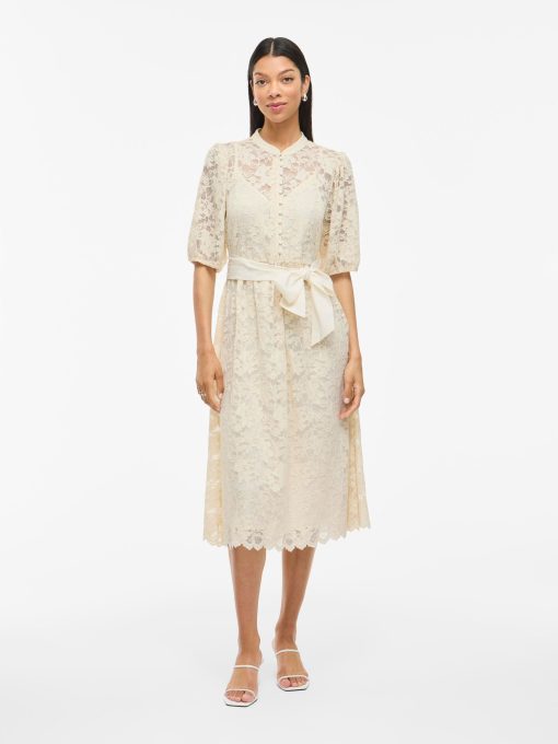 • Midi lace dress• Short sleeves• Round neck• Elastic cuffs• Tie waist with removable belt• Comes with inner strap dress• Regular fit• Length: 115 cm in size M• Sleeve length: 35 cm in size M