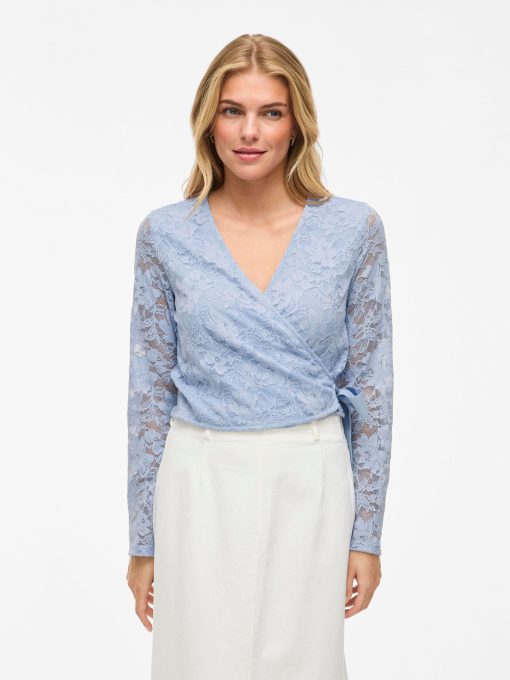 • Long-sleeve lace wrap top• V-neck• Lined body with sheer overlay• Regular fit• Length: 48 cm in size M• Sleeve length: 65 cm in size M
